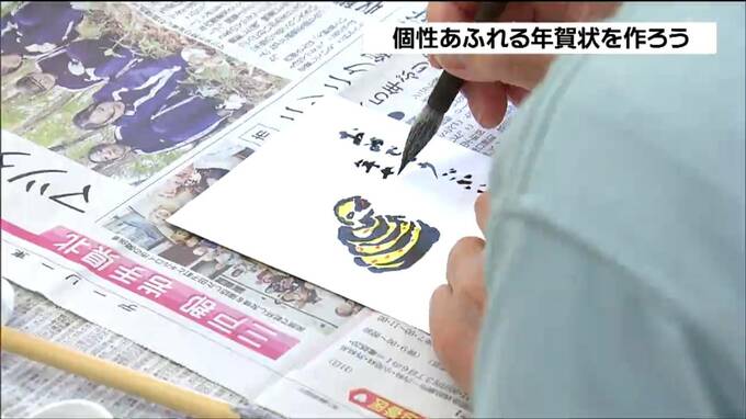 年賀状のシーズンを前に、4日、仙台市内で絵手紙教室があり、はがきいっぱいに絵を描き思いを伝えるこつを学びました。
