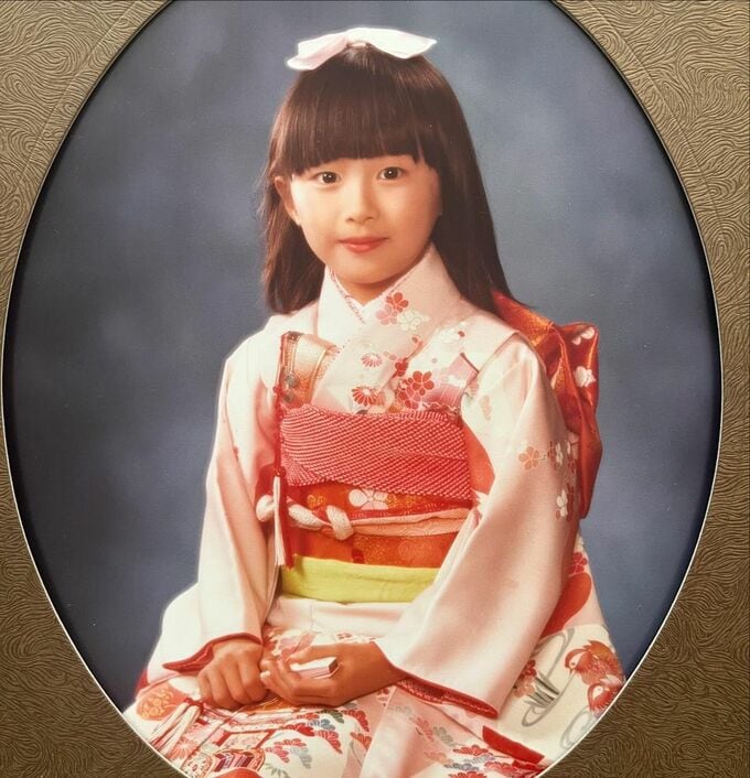 山口もえさんは「40年前の七五三の写真」と、着物姿の写真をアップ。