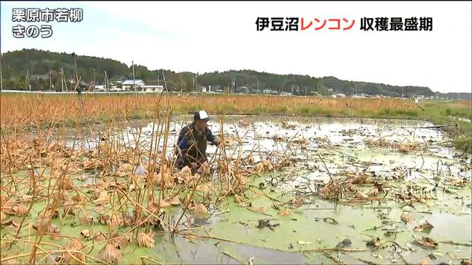 生産地の北限とされているレンコンの収穫が、いま宮城県栗原市で最盛期を迎えています。