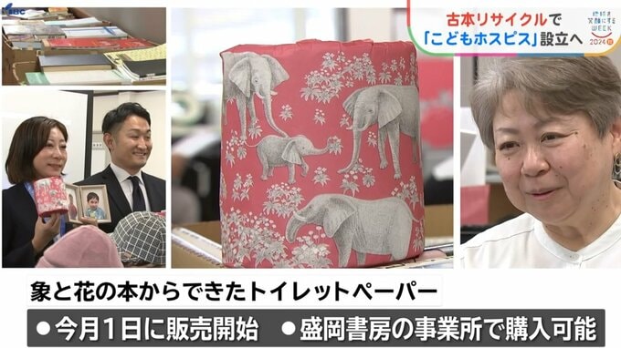 「『こどもホスピス』の設立に向けた活動を支援するトイレットペーパーは1日に販売が始まっていて、盛岡書房の事業所で購入することができます」
