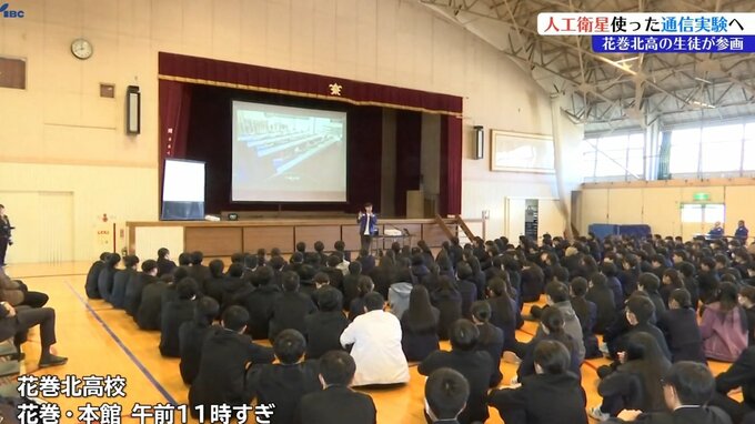 5日は花巻北高校の体育館で全校生徒がロケットの打ち上げを見守りました。