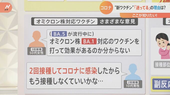 「今、BA.5が主流と言われている中、オミクロン株BA.1対応のワクチンを打って効果があるのか分からない」