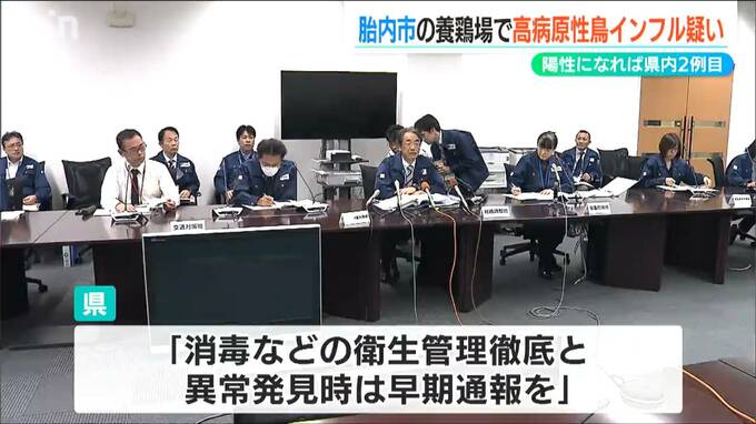 「今シーズン県内2例目となる、高病原性鳥インフルエンザの疑いがあると判定」
