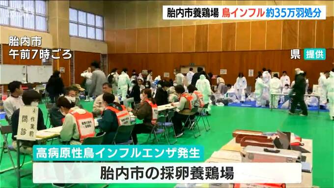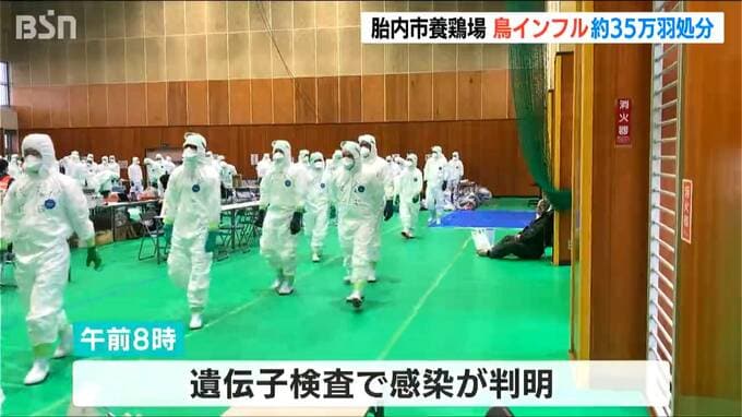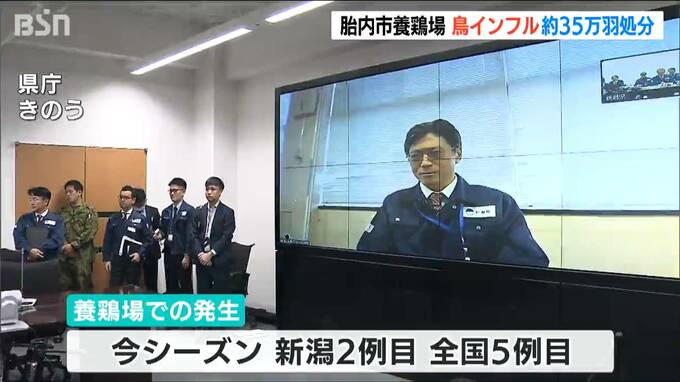 新潟県 胎内市の養鶏場で今シーズン全国で5例目となる高病原性鳥インフルエンザの発生が確認され、およそ35万羽の処分が始まりました。