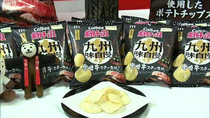 今月から大手菓子メーカーのカルビーが宮崎牛味のポテトチップスの販売を開始し、宮崎県の河野知事に商品をお披露目しました。(田尻怜也記者)「今回発売されたのが、宮崎牛を使用したポテトチップスです」この商…
