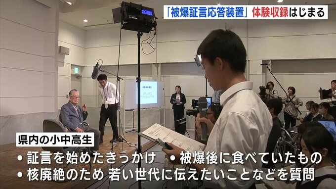 「AI」を活用して被爆体験を伝える応答装置の製作に向けて、広島市は証言の収録を始めました。広島市は、画面上に映し出された被爆者からAIを活用して対話形式で証言を聞くことができる「被爆証言応答装置」の製作を目指しています。