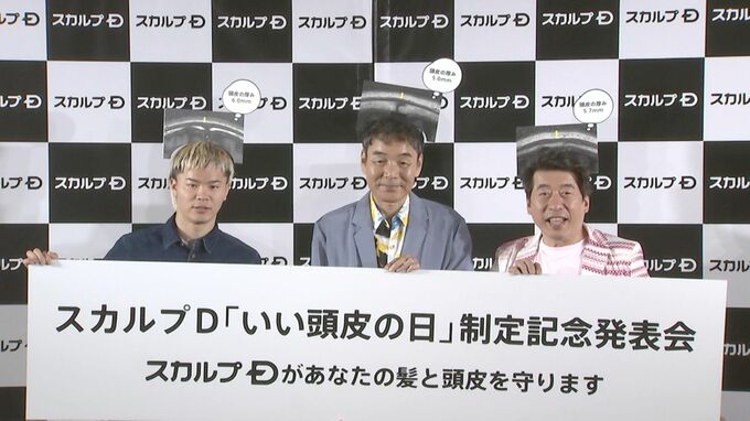 ダチョウ倶楽部・肥後克広さん、寺門ジモンさんと、格闘家・那須川天心さんが スカルプD「いい頭皮の日」制定記念発表会に登壇しました。