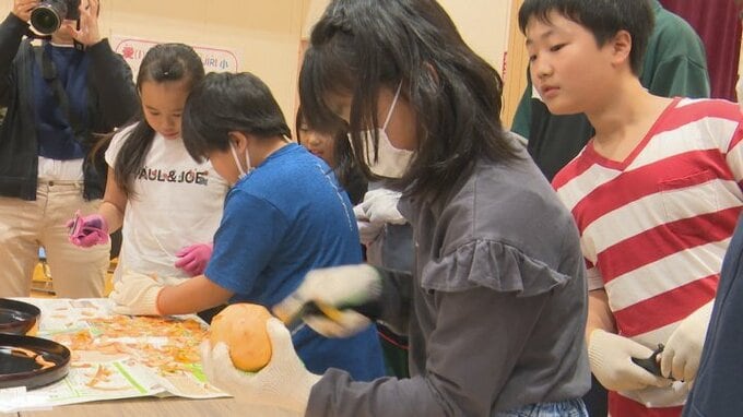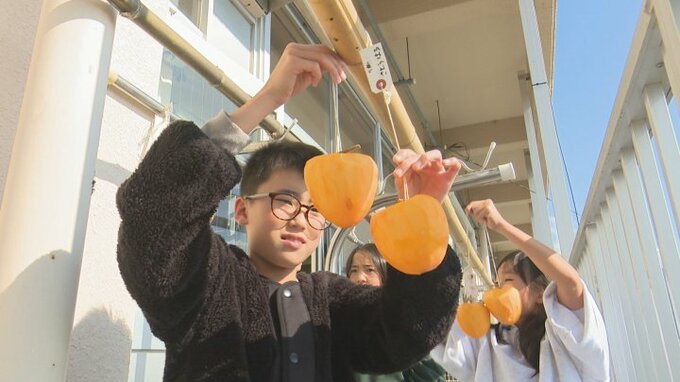 地域の特産品がどのようにできるかを知ってもらおうと、山梨県甲州市の小学生がころ柿作りに挑戦しました。