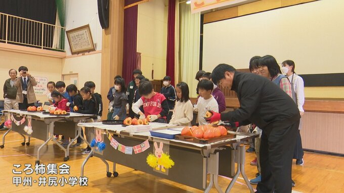 甲州市の井尻小学校で行われたのは、地元の特産品ころ柿について学ぶ「ころ柿集会」です。