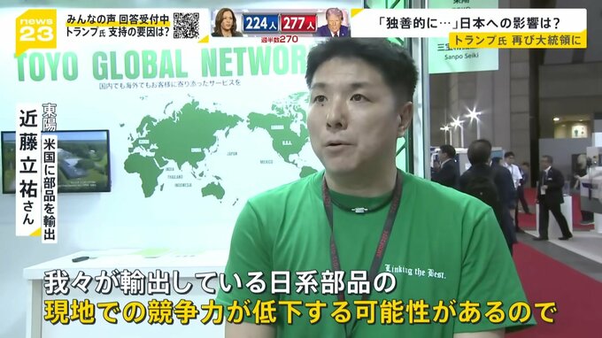 「モノ作りに欠かせない工作機器の展示会です。アメリカ企業と取り引きのある日本の企業は今回の大統領選の結果をどのように見ているのでしょうか」