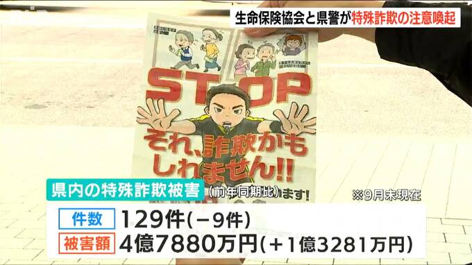 特殊詐欺の被害が増える中、生命保険協会と新潟県警が新潟駅前で被害防止を呼びかけました。JR新潟駅前では7日朝、生命保険協会新潟県協会と新潟県警が通勤通学途中の市民に注意喚起のチラシなどを配りました。県…