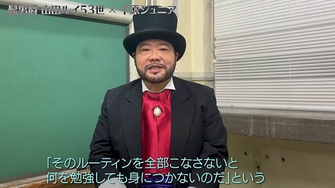 お笑いコンビ「髭男爵」の山田ルイ53世さんが、千原ジュニアさんの公式YouTubeチャンネルに登場し、これまでの人生を語り合いました。
