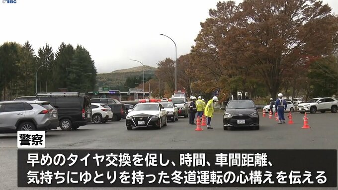 本格的な冬の訪れに備えて八幡平市にある東北自動車道のインターチェンジで、警察がドライバーに早めのタイヤ交換を呼びかけました。