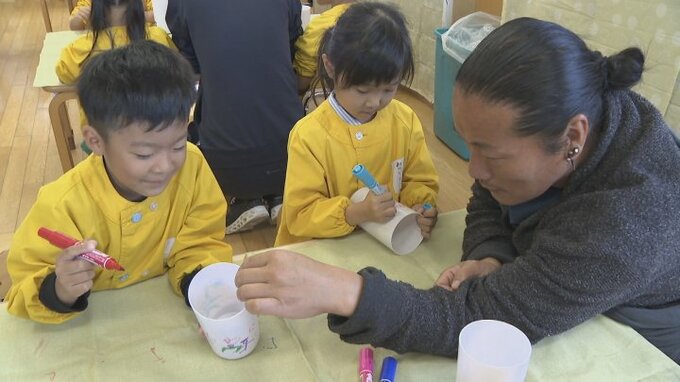 アーティストのキャンドル・ジュンさんが山梨県甲斐市を訪れ、園児と夢をテーマに交流しました。