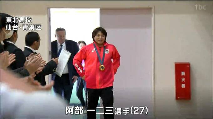 仙台市青葉区にある東北高校の体育館に登場した阿部一二三選手。