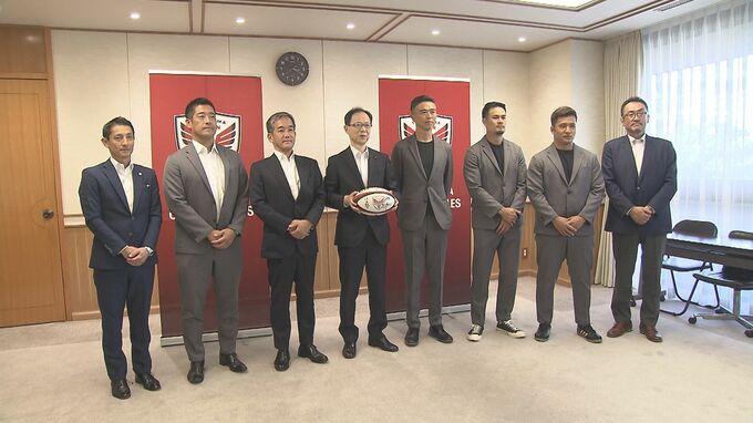 ジャパンラグビーリーグワンで、大分を第2の拠点とする横浜キヤノンイーグルスの選手らが7日、佐藤知事を表敬訪問し、今シーズンの優勝を誓いました。