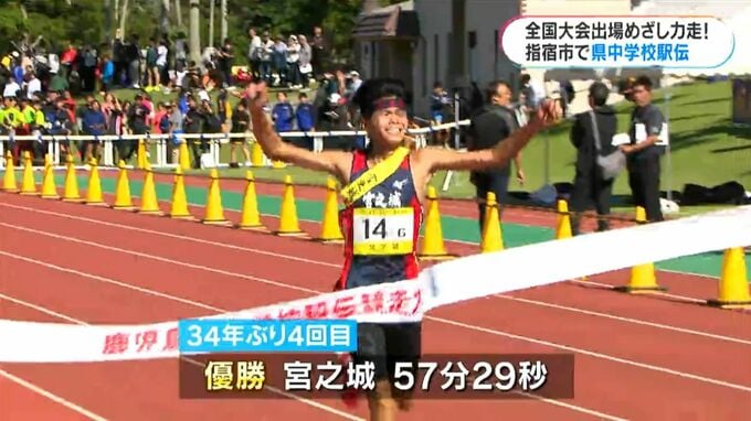 しかし、2区では6位でタスキを受け取った宮之城の外川内が5人抜きの快走。2位に3秒差をつけ、首位に立ちます。その後も宮之城が一度もトップを譲らず、34年ぶり4度目の優勝を飾りました。