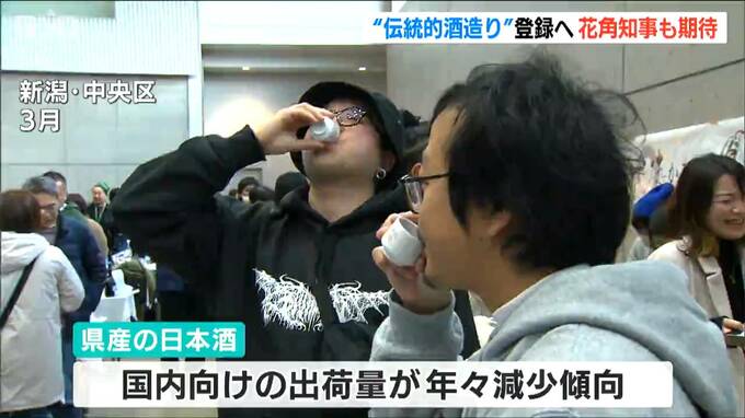 ただ県によりますと、新潟県産の日本酒は国内向けの出荷量が年々減少傾向にあるということで、花角知事は無形文化遺産に登録されれば、国内外に日本酒の魅力をさらに発信できるとしています。