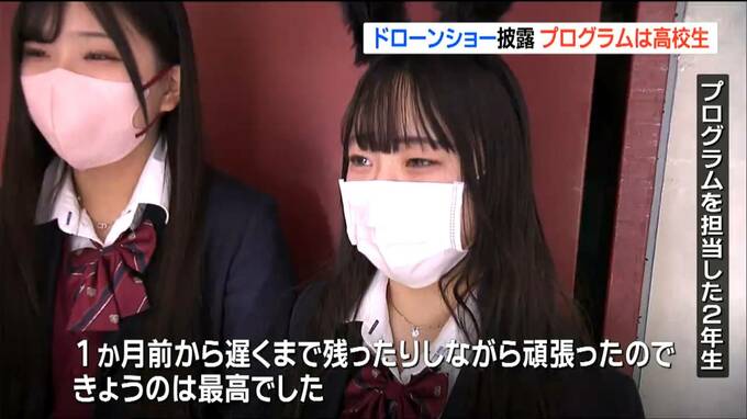 このドローンショーは、デジタル人材育成の一環として、2年生10人がプログラミングなどを学び実現しました。