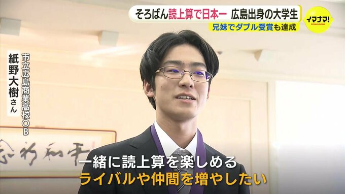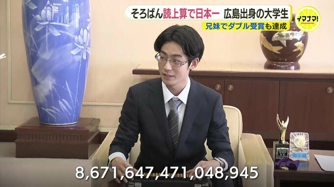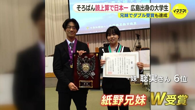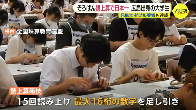 広島市にあるそろばん強豪校出身の大学生が、全国大会で日本一の栄冠を手にしました。さらに、兄妹でも異例のダブル受賞を達成です。
