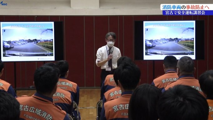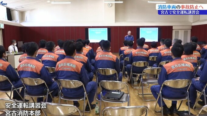 消防車両の事故防止と運転技術の向上を目的とした消防署員に対する安全運転講習会が8日、宮古市の消防本部で開催されました。