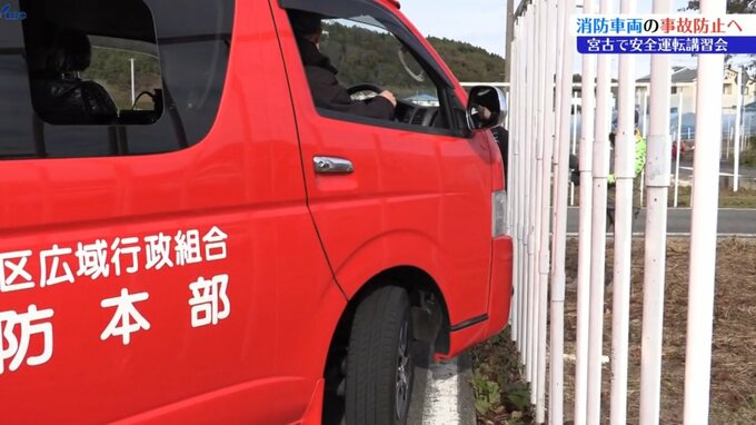 このあと宮古市内の自動車教習所に移動し、教習コースを実際の緊急車両で走行する実技が行われました。
