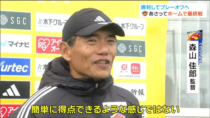 サッカーJ2リーグ、10日ホームで最終戦を迎えるベガルタ仙台。プレーオフ進出をかけた大一番を前に、森山監督が意気込みを語りました。