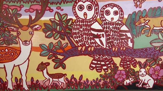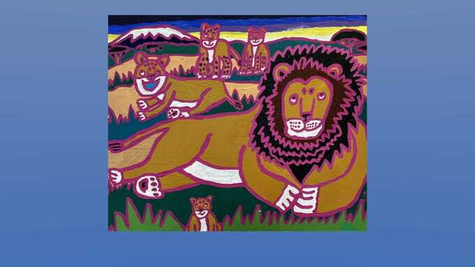 美路人の勤務先でのシーンに、宏介さんがドラマのために描きおろした「ライオンの親子」が登場しました。