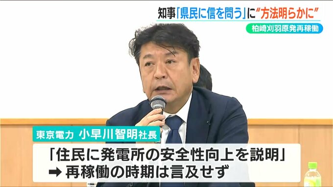 この日、花角知事はこれまで同様に「現時点で方法は決めていない」と述べた一方で、東京電力の小早川智明社長は「現在、発電所の安全性が向上したことを住民に説明している」として、再稼働の時期については言及しませんでした。