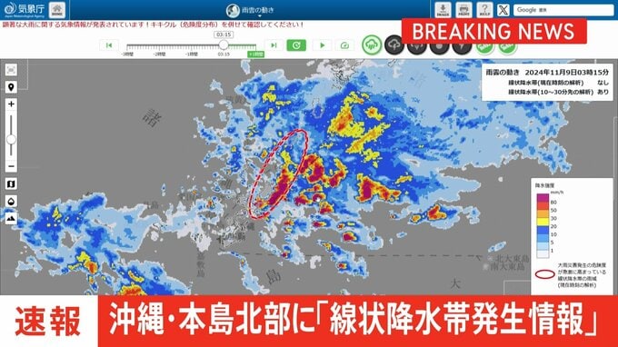気象庁は午前3時17分、沖縄県の本島北部に「線状降水帯発生情報」を発表しました。この情報が発表された地域では、線状降水帯によって非常に激しい雨が降り続いていて、命に危険が及ぶ土砂災害や浸水、河川の洪水…