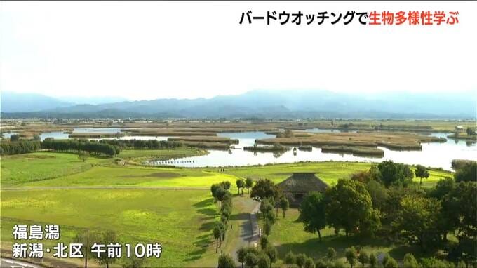 新潟市北区でバードウオッチングを体験するイベントが開かれ参加者が生物多様性を学びました。