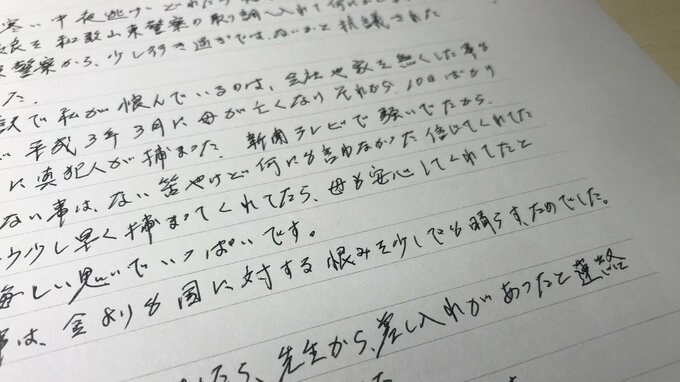 「ダイナマイト爆殺事件」で容疑者として疑われ、その疑いは晴れたものの34年の時を経て生活保護の不正受給で囚われの身となった水谷受刑者。弁護士に宛てた手紙には、「爆殺事件」をきっかけに人生が大きく暗転したことがつづられていた。「1月の夜中 寒い中夜逃げ どれだけ悔しく惨めな思いをしたか」(手紙より)