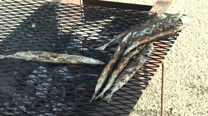 フィニッシュ地点には5年ぶりに復活した網焼きなどのサンマ料理が走り終えたランナーに振る舞われました。