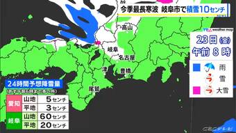 【大雪情報】東海地方各地で雪を観測 岐阜市で10センチの積雪 東海道新幹線は始発から一部区間で速度を落として運転 週末にかけて岐阜を中心に警戒を 最新の雪シミュレーション 気象庁