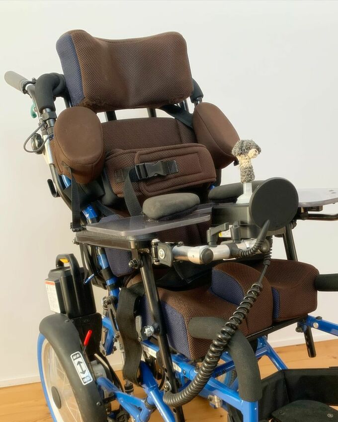 可愛いカバーですが、それゆえに小さな子どもの興味をひいてしまうのが難点だそうで、電源がついた状態で「ジョイスティック」を触ると(触られると)車椅子が動いてしまうので注意が必要。