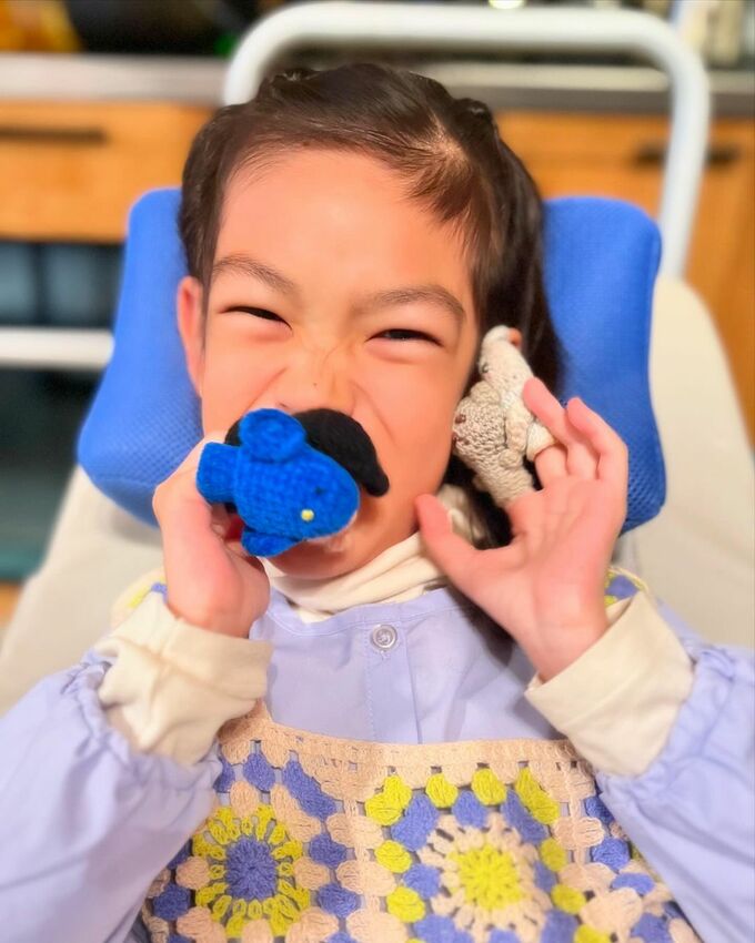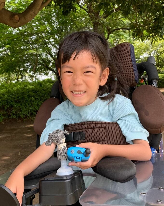 星野さんの趣味は「あみぐるみ」で、ふうかさんの車椅子を操作するための「ジョイスティック」のカバーとして作った物だといいます。