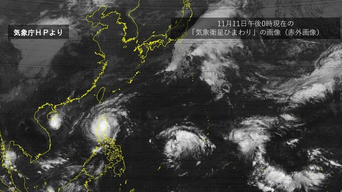予報円の中心:北緯14度50分 (14.8度) 東経129度00分 (129.0度)