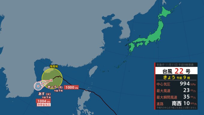 【台風情報】4つ目の台風発生へ…「クアドラプル台風」になるか 22号(インシン)・23号(トラジー)・24号(マンニィ)そして…『熱帯低気圧d』今後どうなる【11日・午後0時40分更新】 青森テレビ 2024年11月11日(月) 12:40 国内 最新台風進路予想図