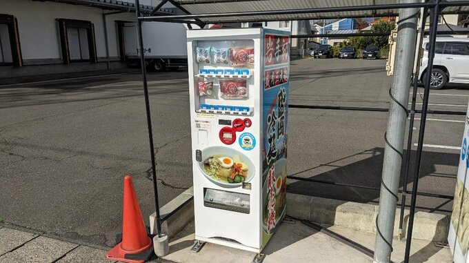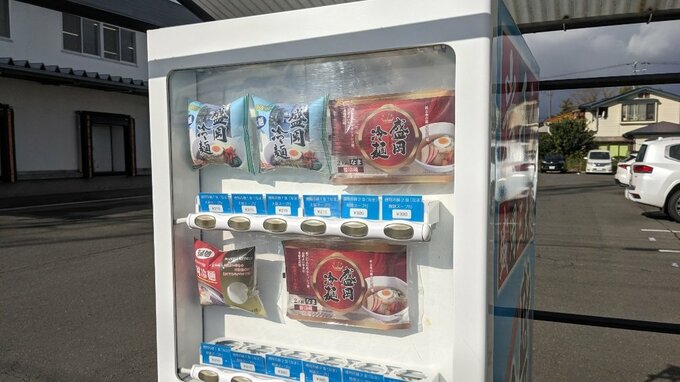 製麺会社の営業所の前に、飲料ではないものを売っている自販機が…