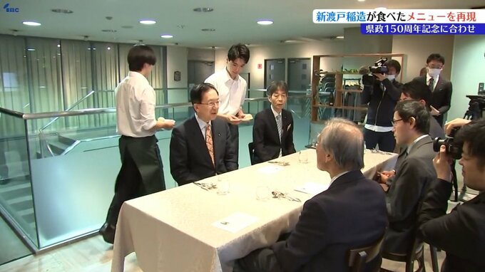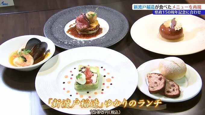 料理は、盛岡市出身の偉人・新渡戸稲造が食べた洋食を基にしていて、三陸産の海の幸を使ったブイヤベースや、県産牛のローストビーフなど県産食材を豊富に使ったコースメニューとなっています。