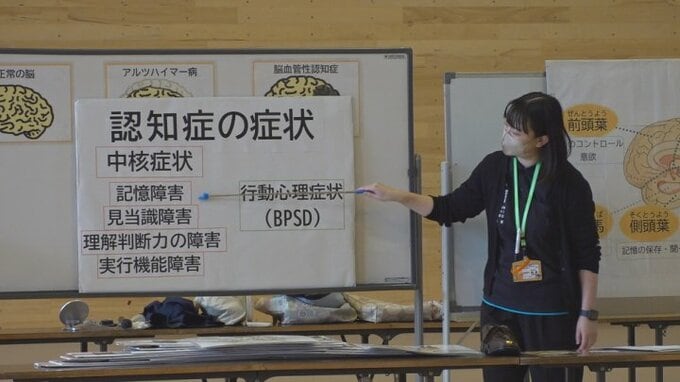 講座では、市の担当者が認知症は様々な脳の病気で記憶力や判断力が低下し、社会生活に支障をきたした状態と説明しました。