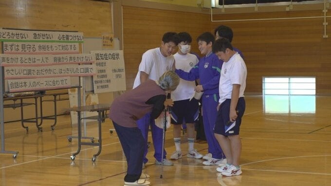 認知症サポーター養成講座は山梨県都留市が開いたもので、都留第一中学校の3年生を対象に行われました。