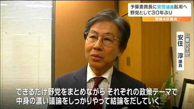 一方、衆議院の予算委員長には、宮城4区選出の立憲民主党・安住淳議員が起用される見通しです。野党議員が就くのは30年ぶりです。