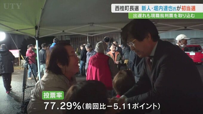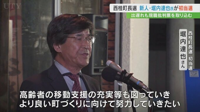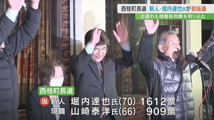 現職と新人の一騎打ちとなった西桂町の町長選挙は11日の開票の結果、新人の堀内達也さんが初当選しました。