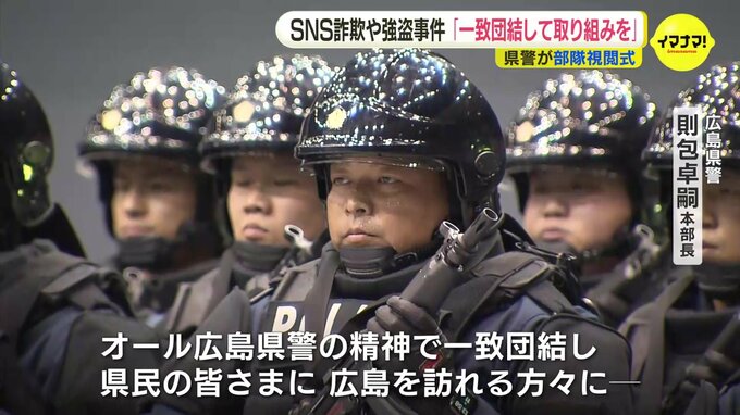 広島県警の「部隊視閲式」が行われ、警察官の訓練などが公開されました。「部隊視閲式」は、警察官たちの士気を高め、活動への理解を深めてもらおうと、毎年行われています。例年は1月に行われますが、ことしは能…