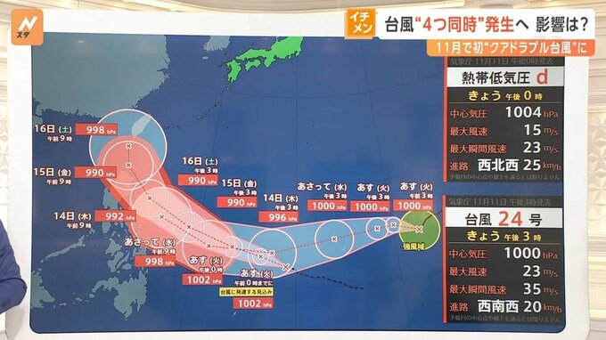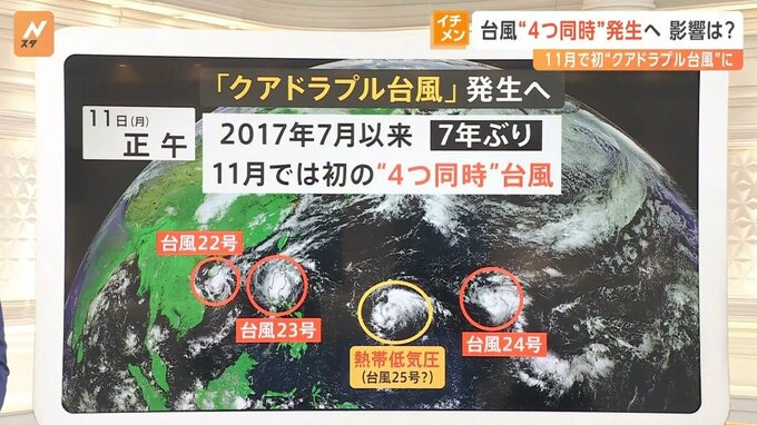 “4つ同時”の「クアドラプル台風」発生へ…影響は?