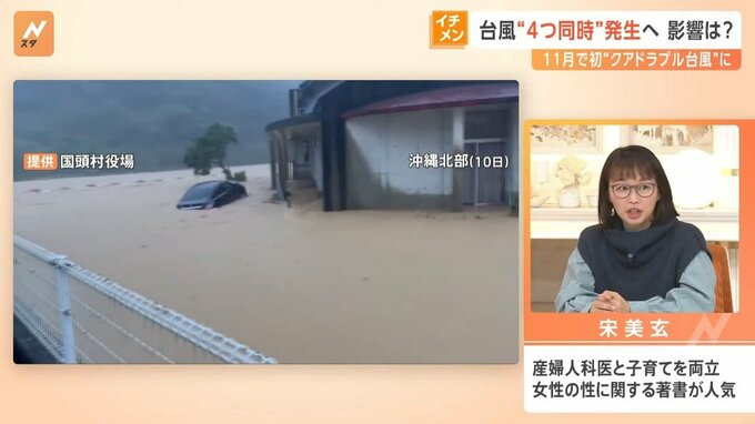 「11月なのに台風か」と皆さん驚かれるとは思いますが、やはり、近づくとまた大雨になる心配もあります。今週は沖縄・奄美でまだまだ油断できない状況が続くので、雨の降り方に十分に注意をしてもらえたらなと思います。