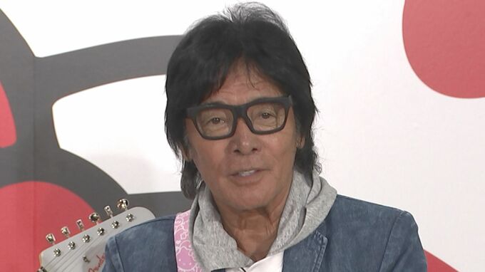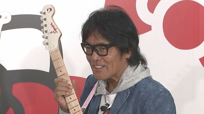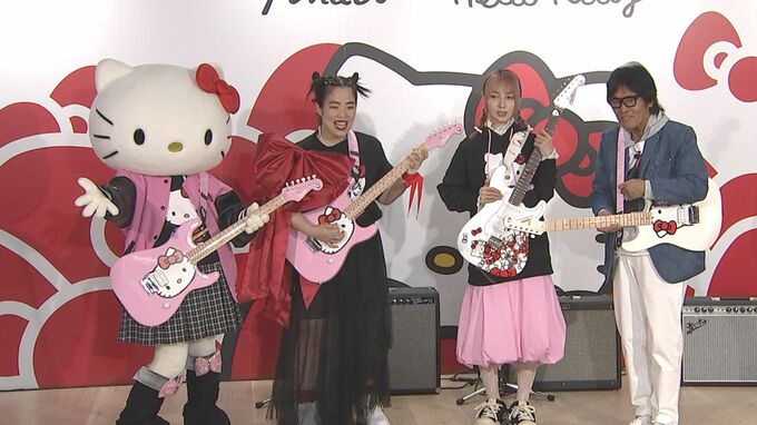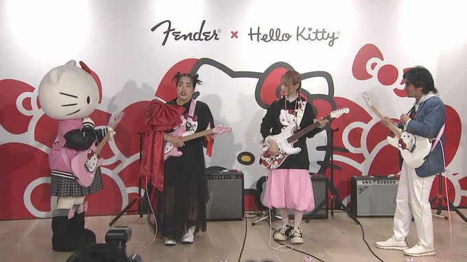 歌手の松崎しげるさんが、ガールズロックバンド「SCANDAL」のMAMIさん、お笑い芸人・ゆりやんレトリィバァさんとともに、Fender🄬×ハローキティの製品発表会に登場しました。