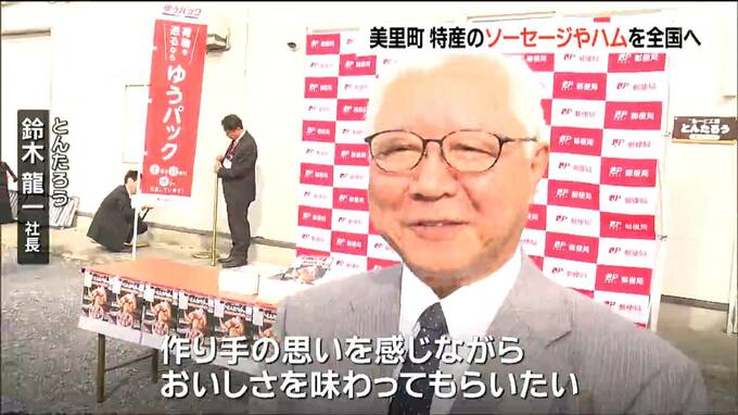 ゆうパックで全国に届けるのは県内産の豚肉を加工したハムやソーセージなどを詰め合わせたギフト商品です。1989年に養豚農家や町などが共同出資して設立された食肉加工業者「とんたろう」が製造しました。