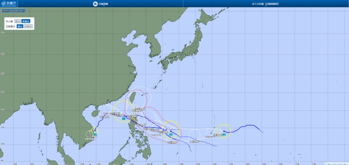 日本の南で蠢く「4つの台風」の今後はどうなるのでしょうか?
